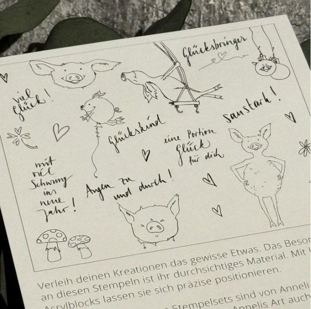 Anneli Hugot von @annelis_art hat für zwei Stempel-Sets, zauberhafte Illustration zur Verfügung gestellt. Das Set Nr.54 ist ganz dem Thema Glücksschwein gewidmet.